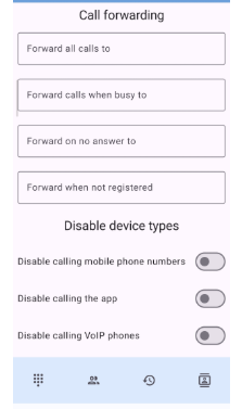 Dans Call forwarding, configurez le renvoi automatique de vos appels :