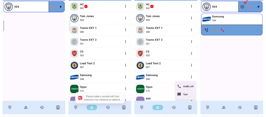 L’onglet Extensions (icône contacts, en bas) affiche la liste de vos collègues. Vous pouvez voir :